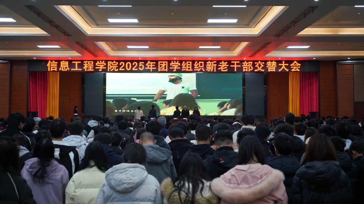 12月5日下午,信息工程学院团学组织新老干部交替大会在共青团团歌声中拉开帷幕。
