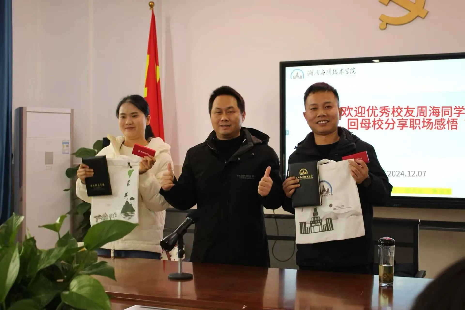周学长首先感谢母校的教育培养,着重强调了职业规划对于大学生成长成才的重要性,并结合同学们当前的学习生活状况,提出了深入挖掘自身潜能、珍惜在校学习时光、始终秉持相信自己、勇于拼搏的信念等宝贵意见。同时,他也希望同学们能热爱湖应,感恩母校,为学校的发展贡献力量。甘学姐也与同学们分享了她的在校经历和工作感悟,讲述了自己的工作历程和职场体验,她提到做任何事情之前都必须有规划,然后能持之以恒的做下去,并从中不断培养独立思考的能力。