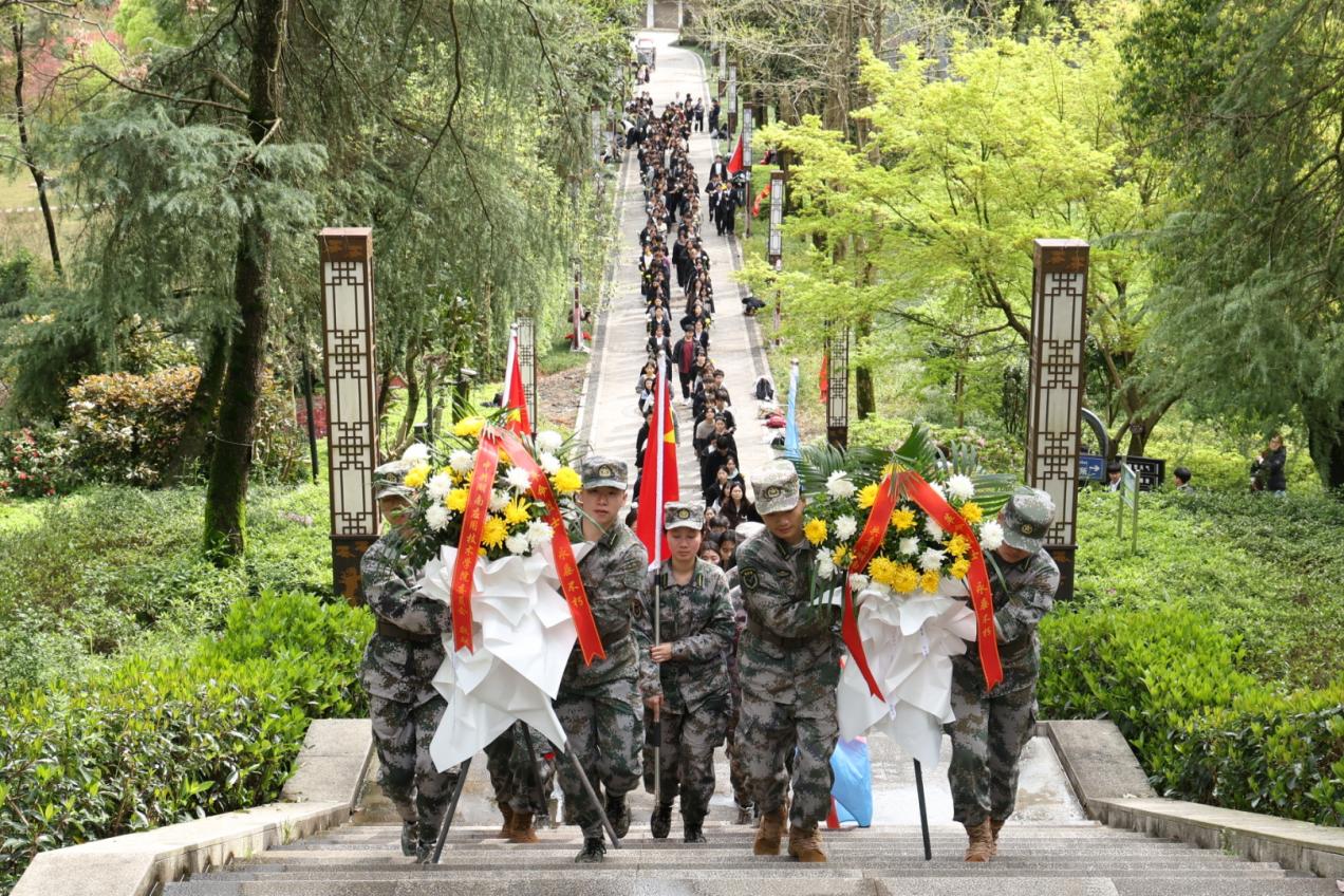 当日下午,师生代表手持花束,整齐列队,经近两小时的步行,前往烈士陵园。陵园内松柏苍翠、庄严肃穆,革命烈士纪念碑巍然矗立,承载着先烈们的赤诚与担当。