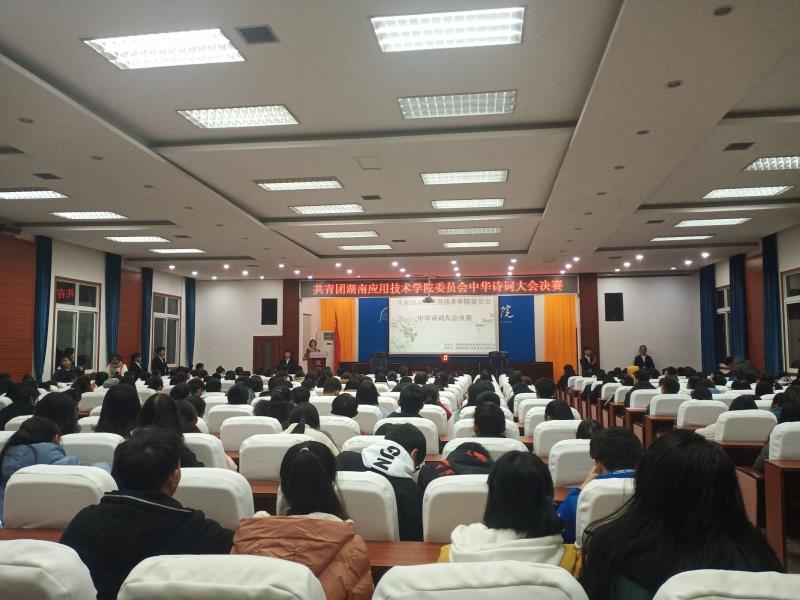 为弘扬中华诗词文化,传颂华夏千古经典。湖南应用技术学院于2019年11月19日—12月6日开展了读书会之“中国诗词大会”活动。12月6日,诗词大会决赛在东校区广言堂隆重举行,在文化传媒学院复赛中脱颖而出的两位同学:19105班聂雨晴,19106班龙清萍参加了此次决赛。