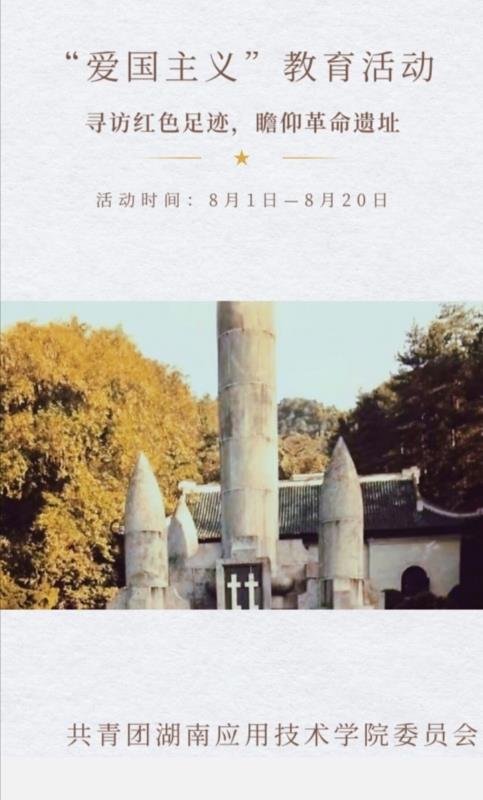 为深入学习贯彻落实习近平总书记的重要讲话和指示精神,持续深化爱国主义教育,共青团湖南应用技术学院委员会积极响应教育部办公厅的号召,特开展此次爱国主义教育基地参观活动。此次活动于2020年7月23日正式开始,在经过报名、作品收集、投票等环节后,于2020年8月20日圆满结束。