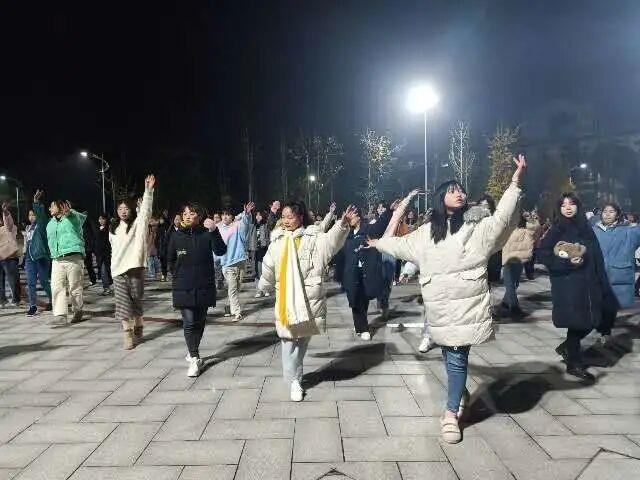 本次校园舞的活动形式为风靡全国的广场舞,尽管天气不尽人意,但工作人员与学员们还是克服了这些困难,按时到达活动场地,在晚自习过后,新校区的大圆盘上都是他们跳跃的身影。