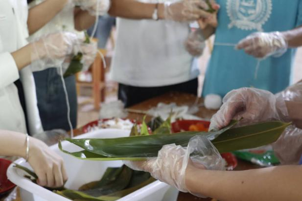 6月3日下午所有同学入场,经主持人发言后宣布本次端午节主题活动正式开始。本次活动内容包括DIY包粽子大赛、热场节目、集体游戏、端午美食共享、集团合影留念五个部分。参与到本次活动的同学们既在DIY包粽子大赛中表现出了默契的配合又在其他活动中展现出了青春的活力。经过一系列的游戏休闲环节后每一位参与者都享受到了粽子的美味并与粽子合影留念,记录这美好的瞬间,同时也迎来了活动尾声。