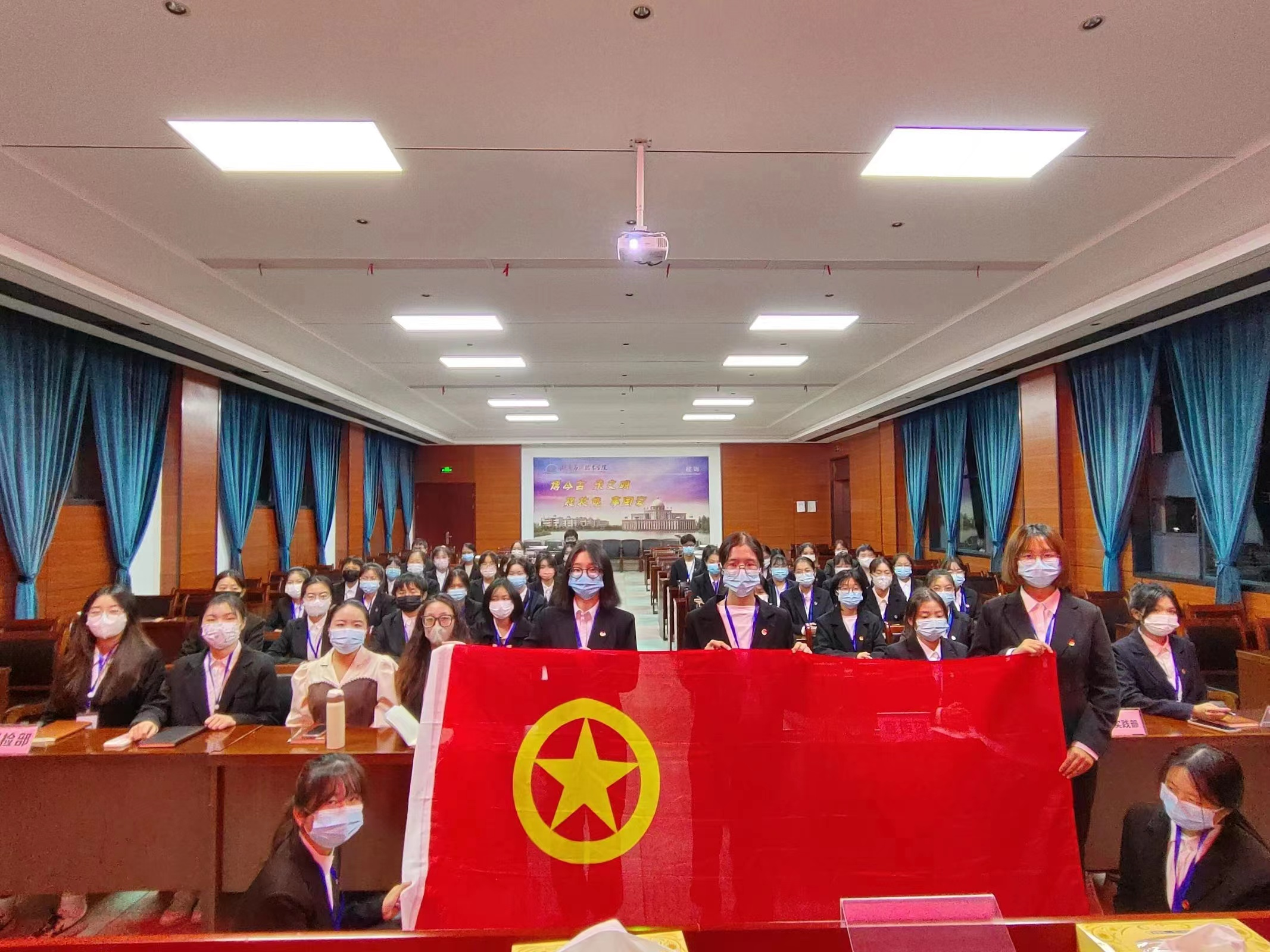 会议第一项:全体起立,齐唱团歌