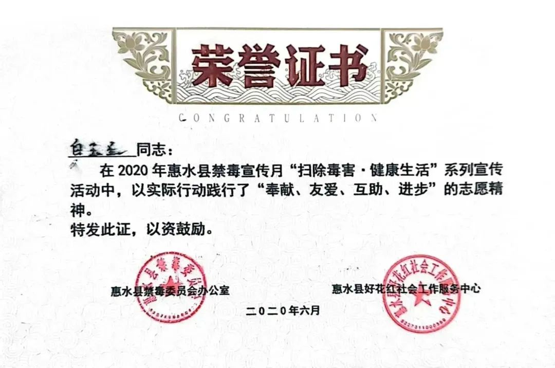 在寒暑假时,白玉兰加入了惠水县志愿者队伍,与县团委、社区工作人员一起进行志愿服务公益活动,将自己全身心投入到志愿服务中。
